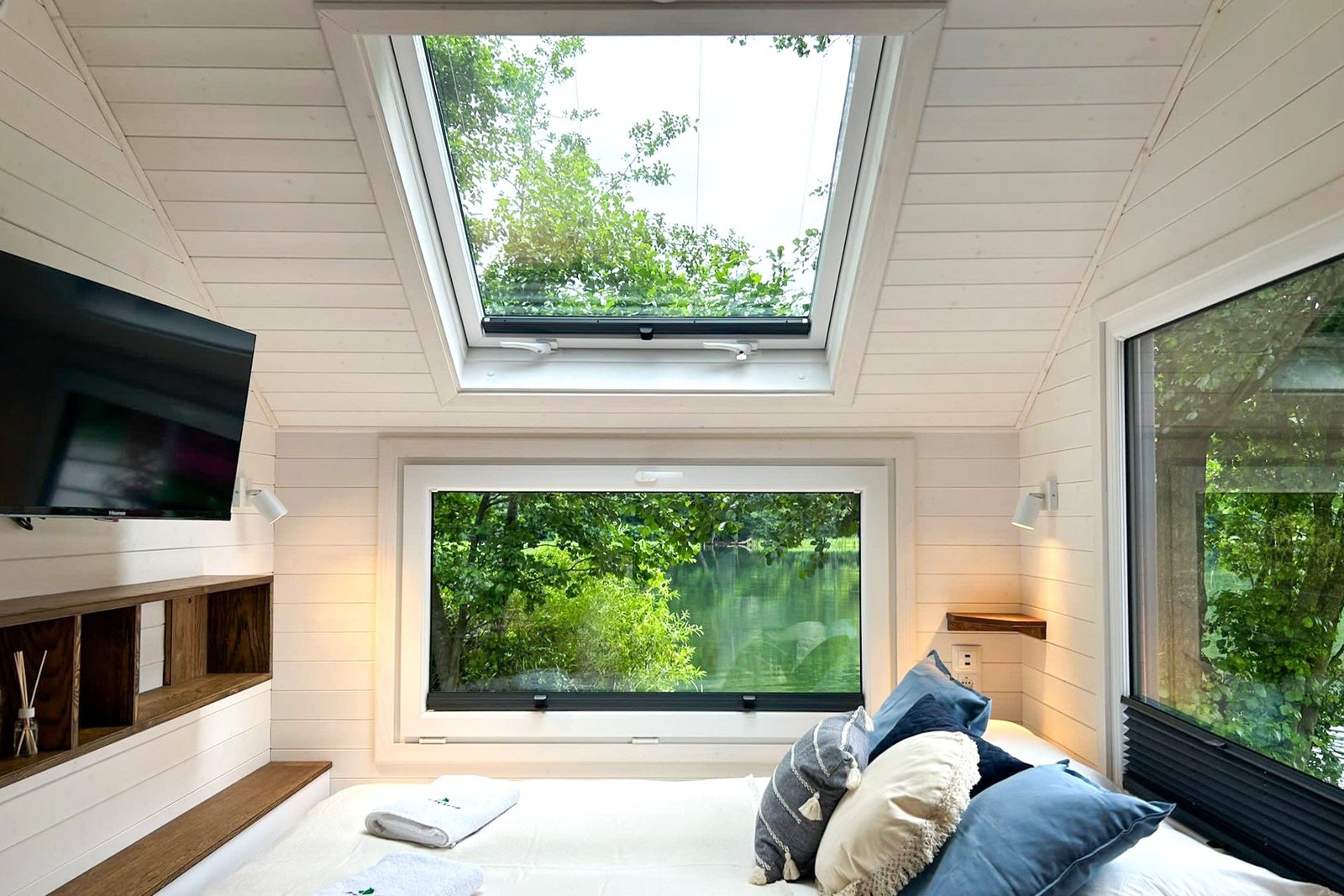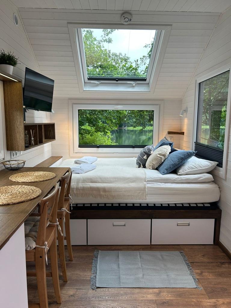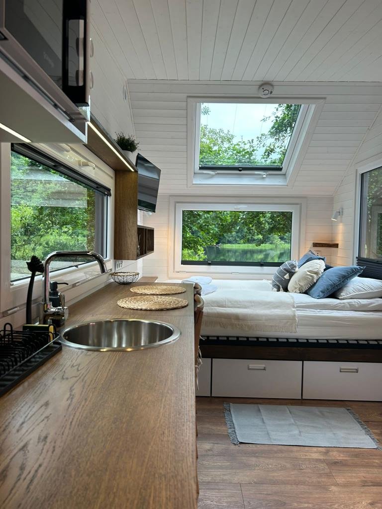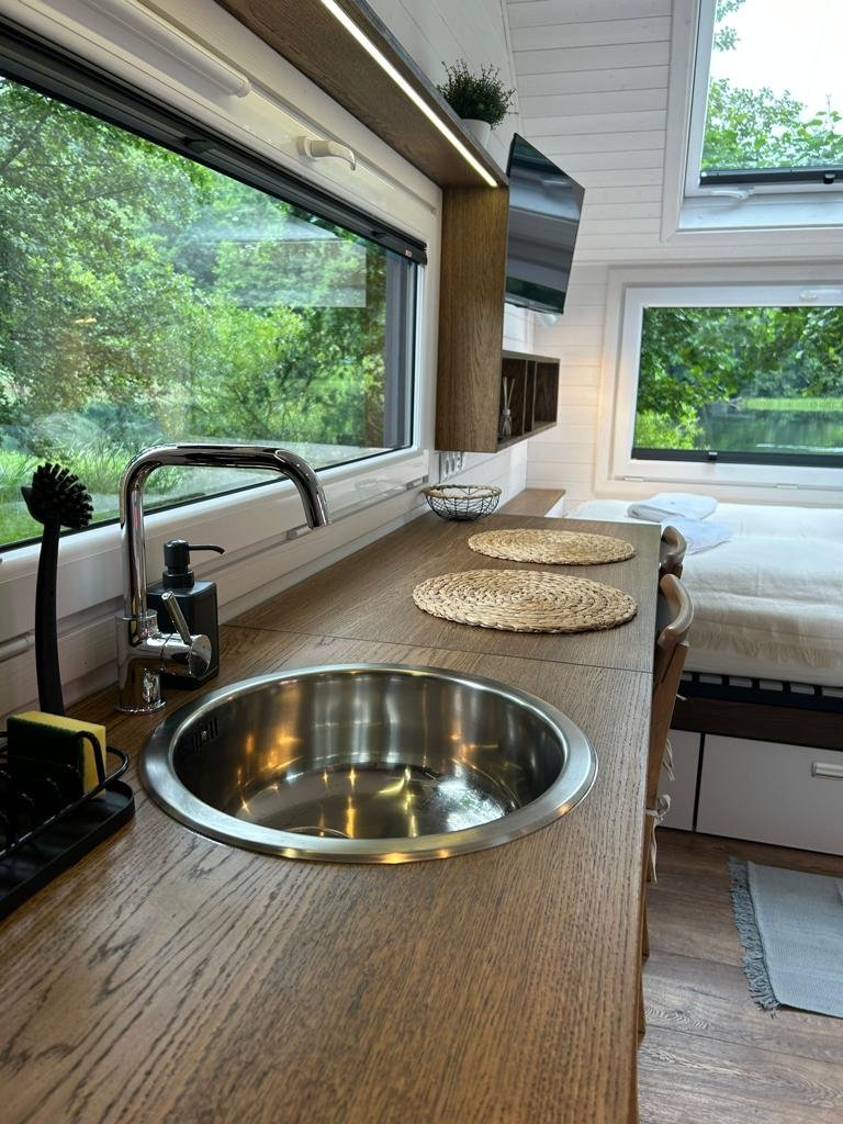 Imaginez vous entouré de paysages à couper le souffle, du lever au coucher du soleil. Nos fenêtres panoramiques vous offrent une vue imprenable sur la beauté naturelle qui vous entoure. Réveillez vous avec les premiers rayons du soleil qui filtrent à travers les arbres, ou relaxez vous en regardant les étoiles scintiller dans le ciel nocturne. Avec notre Tiny House Moon, l’immersion dans la nature est une réalité à chaque instant.
