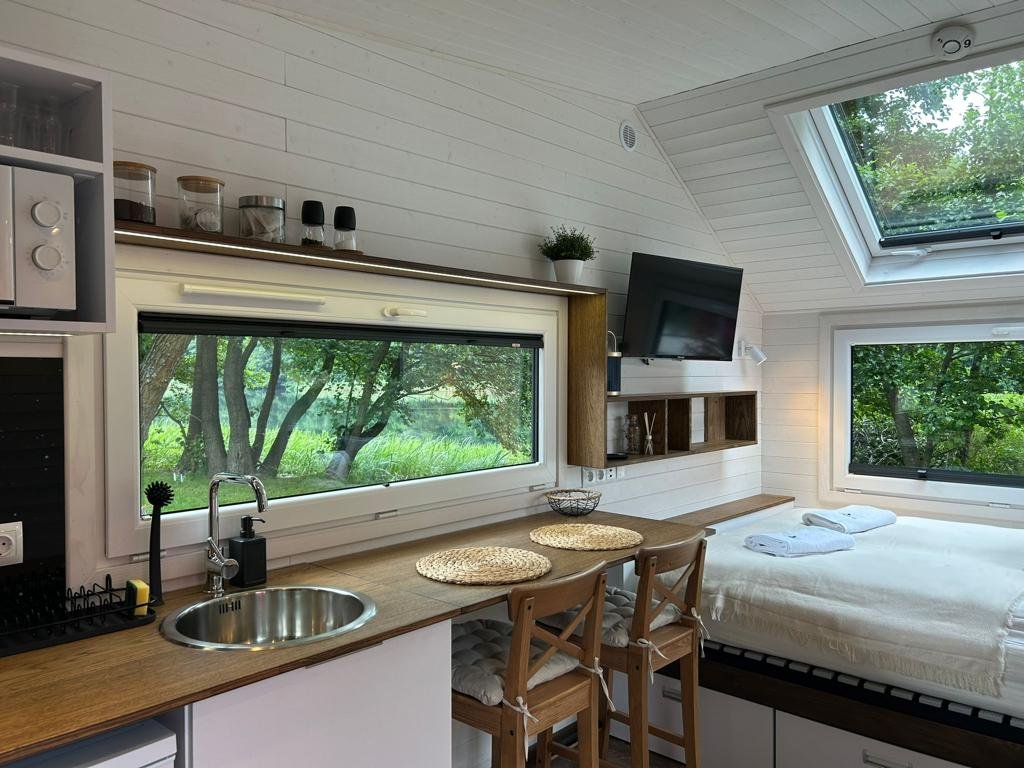 La Tiny House Moon est une escapade idéale pour les couples à la recherche d’intimité et d’aventure. Profitez d’une cuisine entièrement équipée pour des repas romantiques, détendez vous sur votre terrasse privée en écoutant les bruits apaisants de la nature, ou reposez vous dans un lit douillet tout en admirant la beauté extérieure.