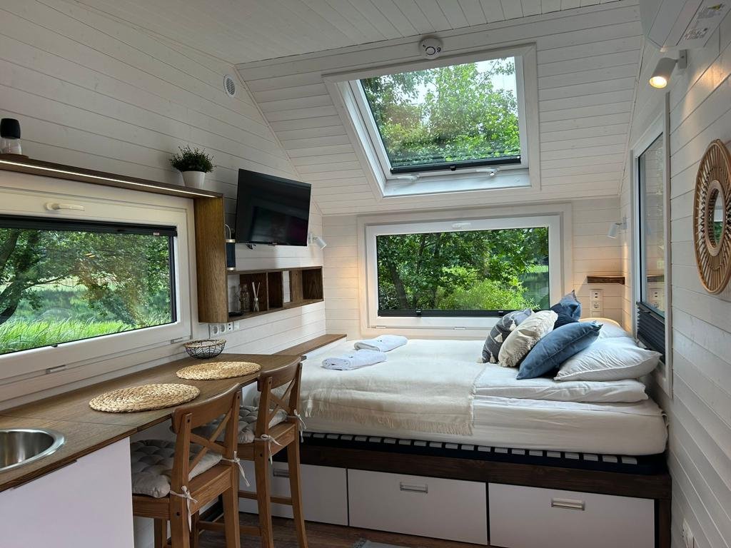Bienvenue dans le monde de la Tiny House Moon, une œuvre d’art architecturale conçue pour les amoureux de la nature et les aventuriers de l’âme. Découvrez une nouvelle manière de vivre en harmonie avec la nature tout en profitant de tout le confort d’une maison moderne.