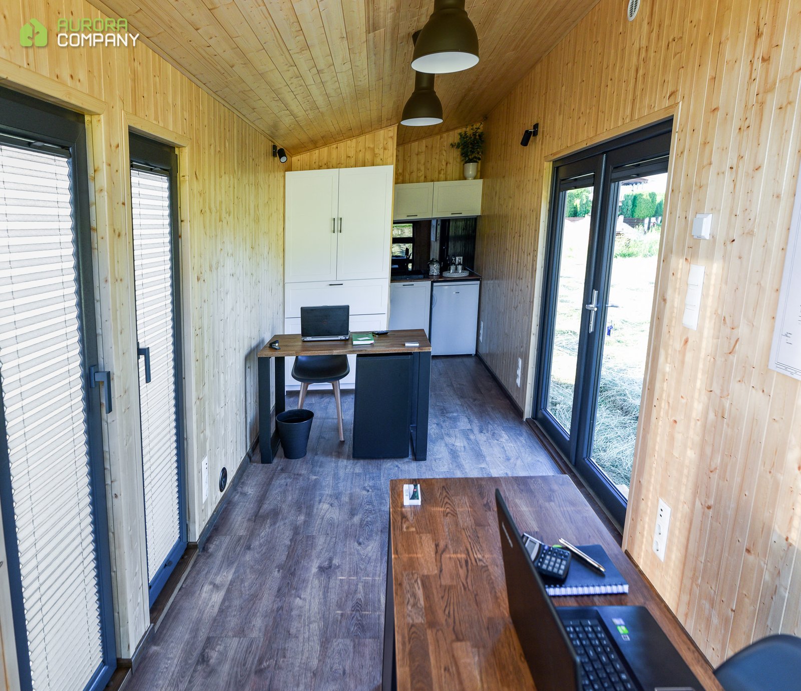 Notre bureau mobile est notre dernier projet, nous avons mis toute notre expérience de la construction de petites maisons dans un petit bureau unique et pratique. Nous avons créé une disposition optimale des pièces qui peut suivre le rythme d’un bureau moderne.
