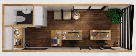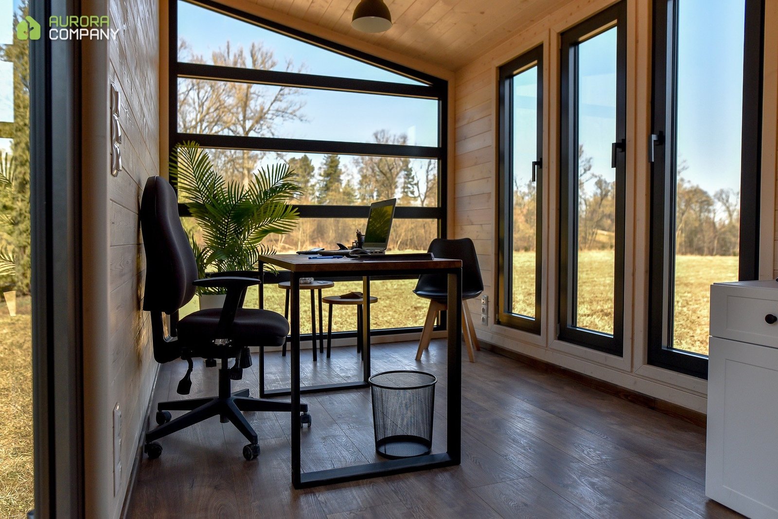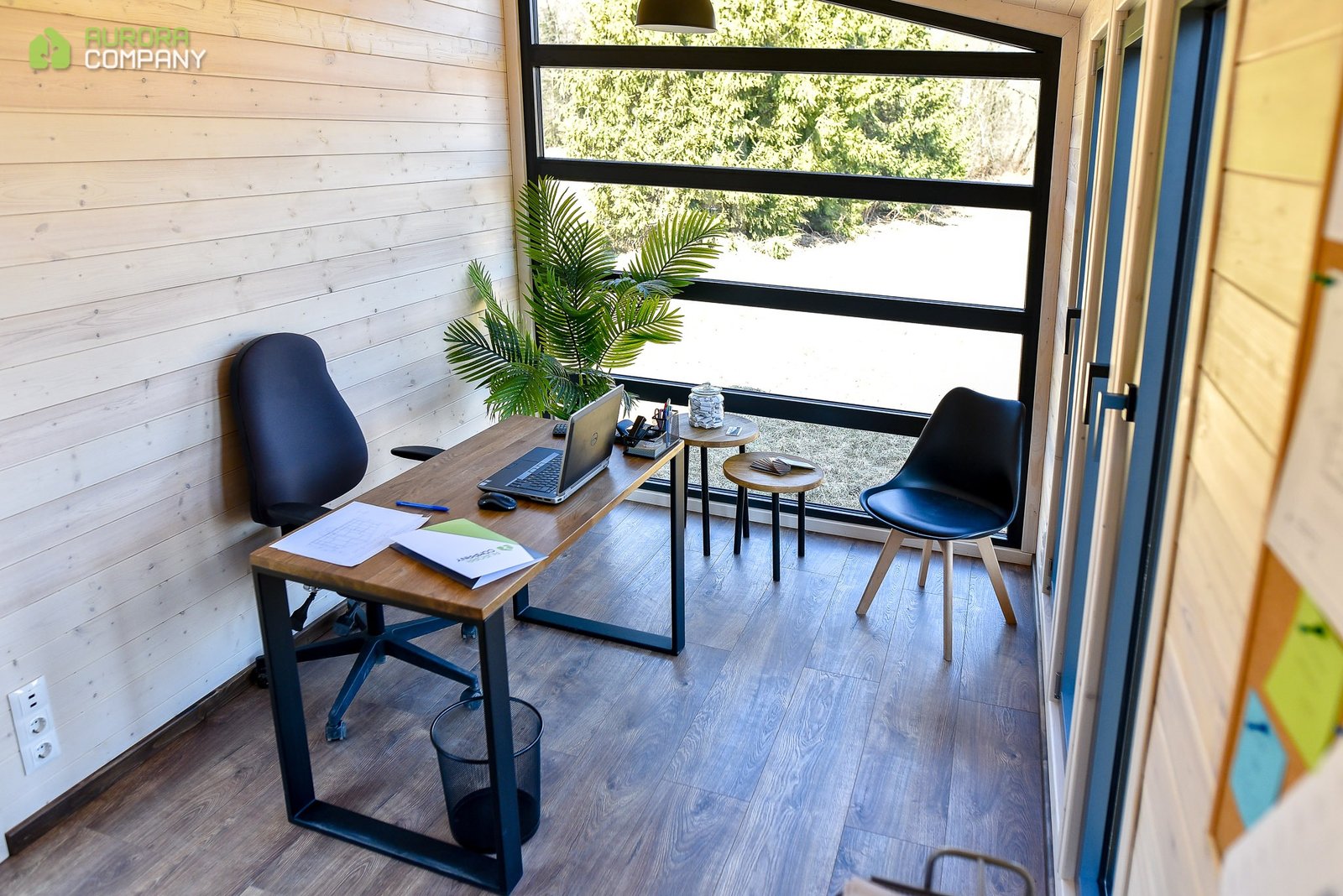 Notre bureau mobile est notre dernier projet, nous avons mis toute notre expérience de la construction de petites maisons dans un petit bureau unique et pratique. Nous avons créé une disposition optimale des pièces qui peut suivre le rythme d’un bureau moderne.